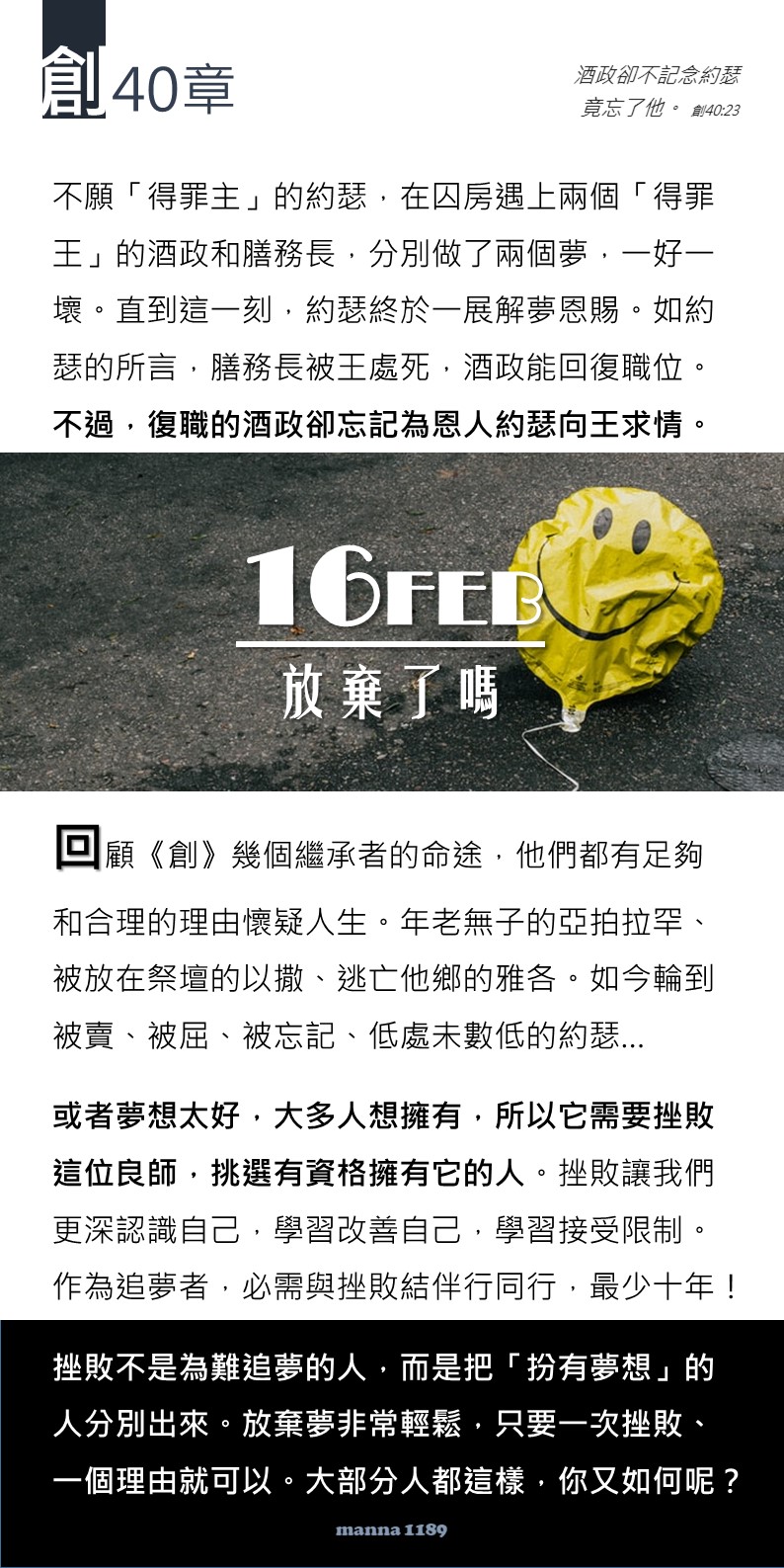 遲來的嗎哪讀經扎記 – 放棄了嗎?(創40)