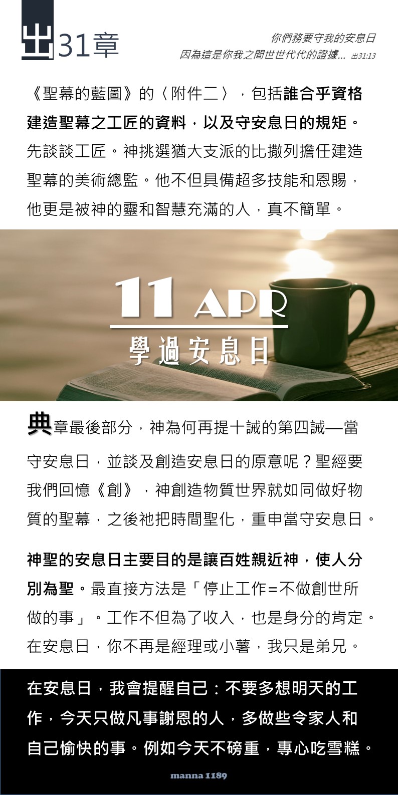 十分喜歡嗎哪提醒對安息日的描述:親近 神,分別為聖。不要多想來日的工作,凡事謝恩,放低身份,做多些令家人和自己愉快的事。